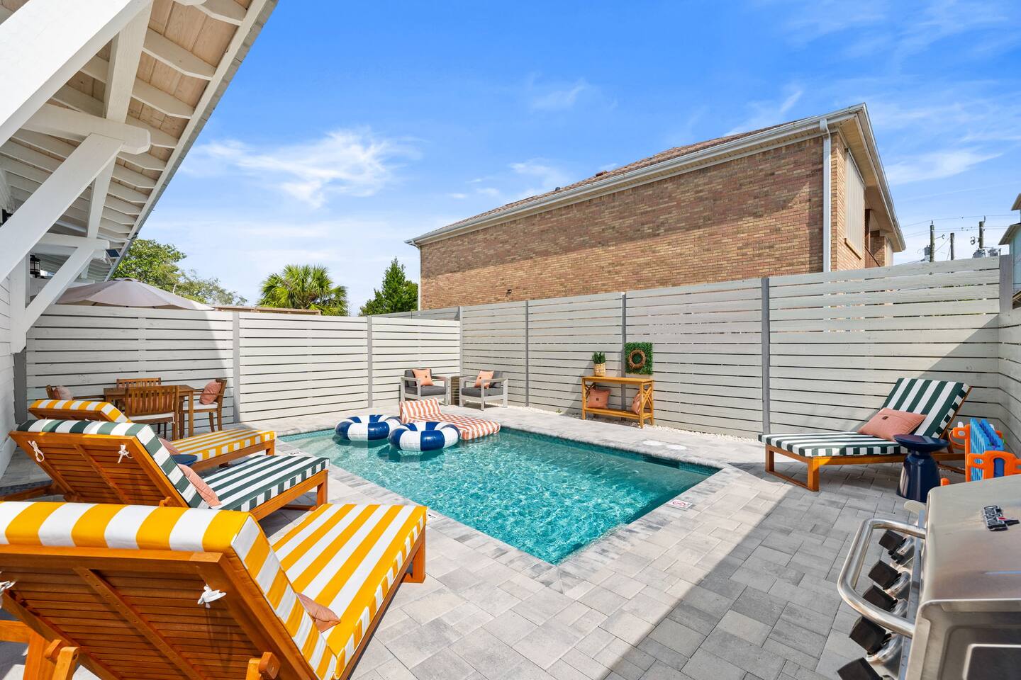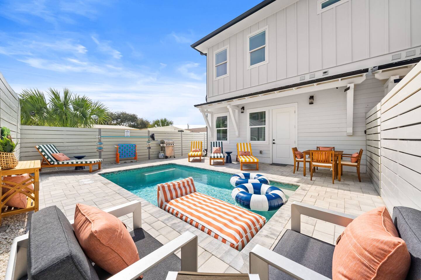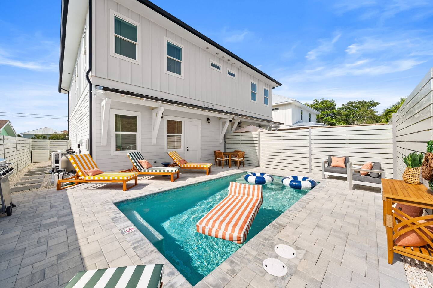 What Guests Love About Evergreen Shores ✅ Private heated pool for relaxing anytime ✅ 2–3 minute walk to the beach — no parking hassles ✅ Gulf views from the balcony ✅ Quiet residential setting (no condo crowds or noise) ✅ Spacious layout perfect for families & groups ✅ Beach gear included (wagon + 10 chairs) ✅ Fast Wi-Fi & Smart TVs throughout ✅ Easy, contact-free self check-in