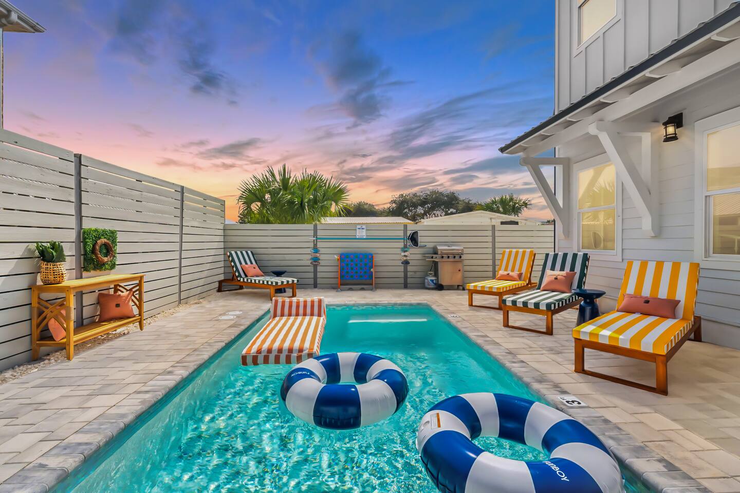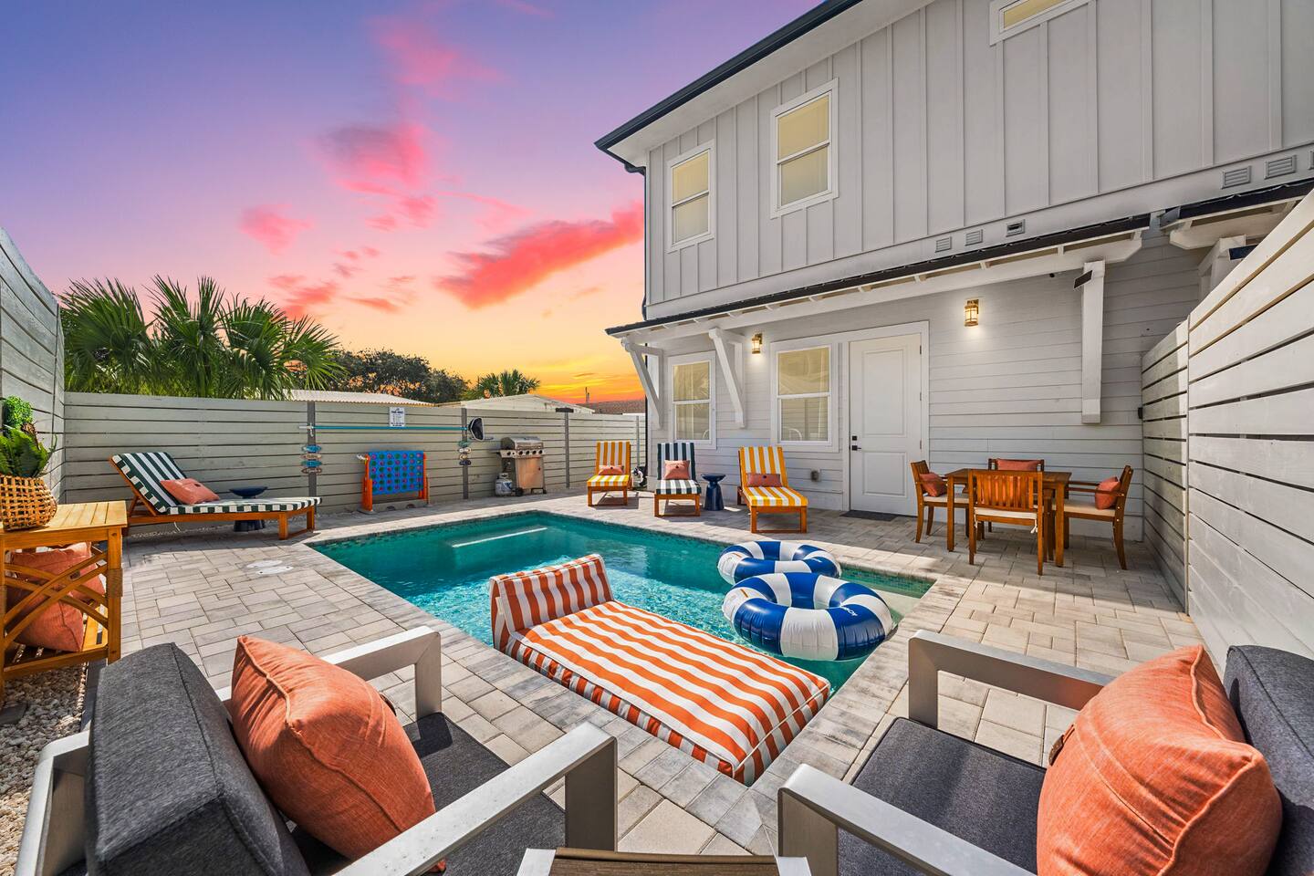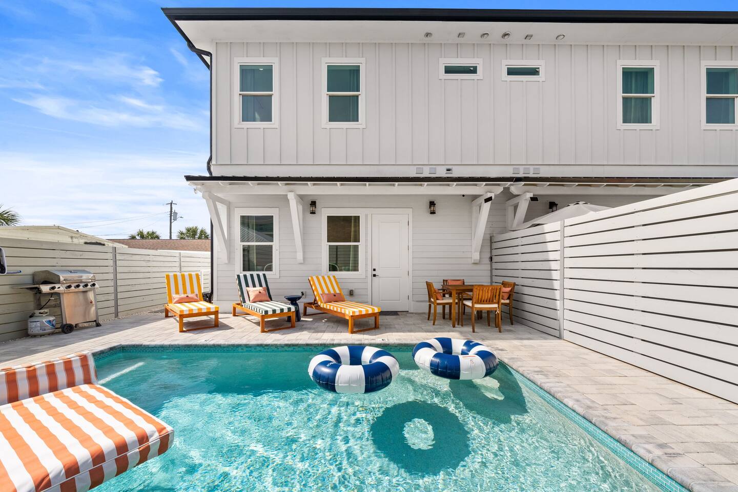 What Guests Love About Evergreen Shores ✅ Private heated pool for relaxing anytime ✅ 2–3 minute walk to the beach — no parking hassles ✅ Gulf views from the balcony ✅ Quiet residential setting (no condo crowds or noise) ✅ Spacious layout perfect for families & groups ✅ Beach gear included (wagon + 10 chairs) ✅ Fast Wi-Fi & Smart TVs throughout ✅ Easy, contact-free self check-in