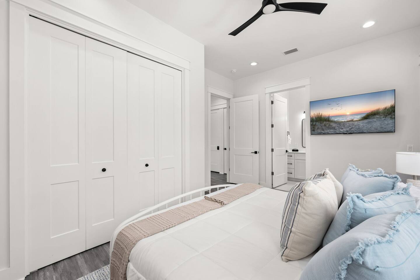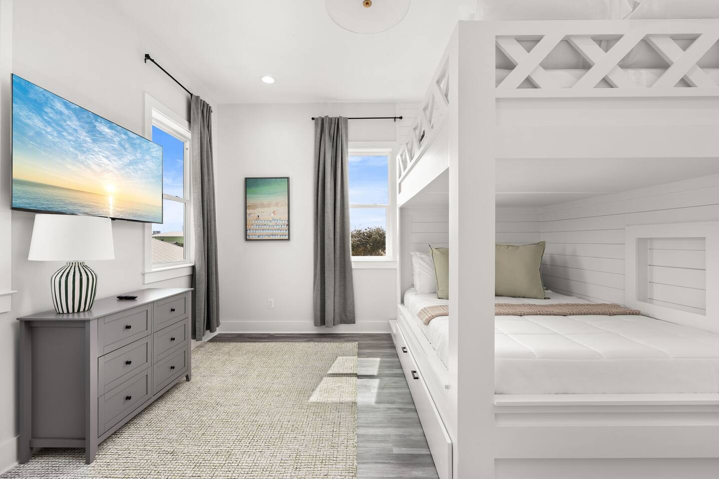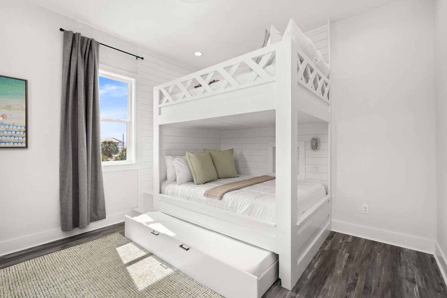 🌴 Welcome to Evergreen Shores — a private beach retreat just steps from the sand with your own heated pool. Enjoy a short 2–3 minute walk to the beach (no parking or crowds), then return to relax in your private heated pool in a quiet, family-friendly neighborhood. Perfect for families and larger groups traveling together, this spacious home offers the ideal mix of location, comfort, and privacy for a stress-free Panama City Beach getaway. Step inside to a bright, open layout with modern finishes and plenty of space to gather—making it easy to unwind after a day in the sun. ⭐ Why guests choose Evergreen Shores Guest favorite with consistent 5-star reviews and top-rated cleanliness. Skip crowded condos and enjoy a quiet residential setting with easy beach access, your own private pool, and space for everyone to relax. The perfect balance of location, privacy, and comfort—especially for families. 🏡 Key Amenities Private heated pool 2–3 minute walk to beach Quiet residential setting (no crowds) Beach gear (wagon + 10 chairs) Fully stocked kitchen Washer & dryer High-speed Wi-Fi Smart TVs throughout Outdoor shower Gas grill Board games & family-friendly extras 🛏 Bedrooms & Bathrooms (Sleeps 12) Plenty of space for everyone to sleep comfortably without feeling crowded. Each bedroom is designed for comfort with quality mattresses, hotel-style linens, and Smart TVs. Primary Suite: King bed, en-suite bath, private balcony w/ Gulf views Bedroom 2: King bed, en-suite bath, direct pool access Bedroom 3: King bed Bedroom 4 (Bunk Room): Queen-over-Queen bunk + Full trundle 🎯 Entertainment & Family Fun Board games & card games Children’s books & toys Life-sized Connect 4 🍽 Kitchen Fully stocked with cookware, dishes, and essentials for easy meals at home. Enjoy dining together or relaxing in the open living space after a beach day. 🌴 Outdoor Oasis Enjoy your fully fenced private heated pool, perfect for refreshing morning swims or relaxing evenings after a day at the beach. Lounge poolside, soak up the sun, and easily rinse off after the beach with the outdoor shower.