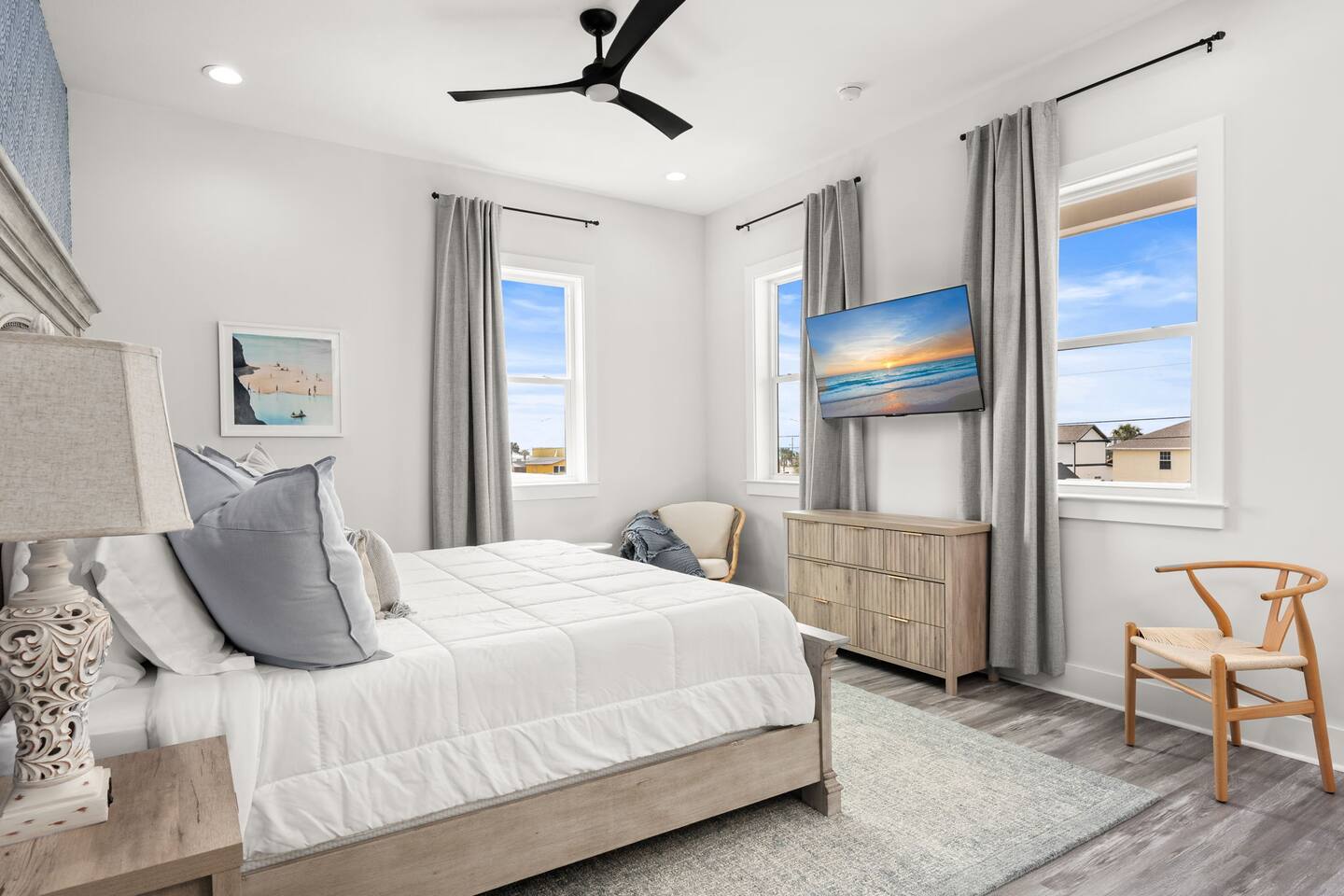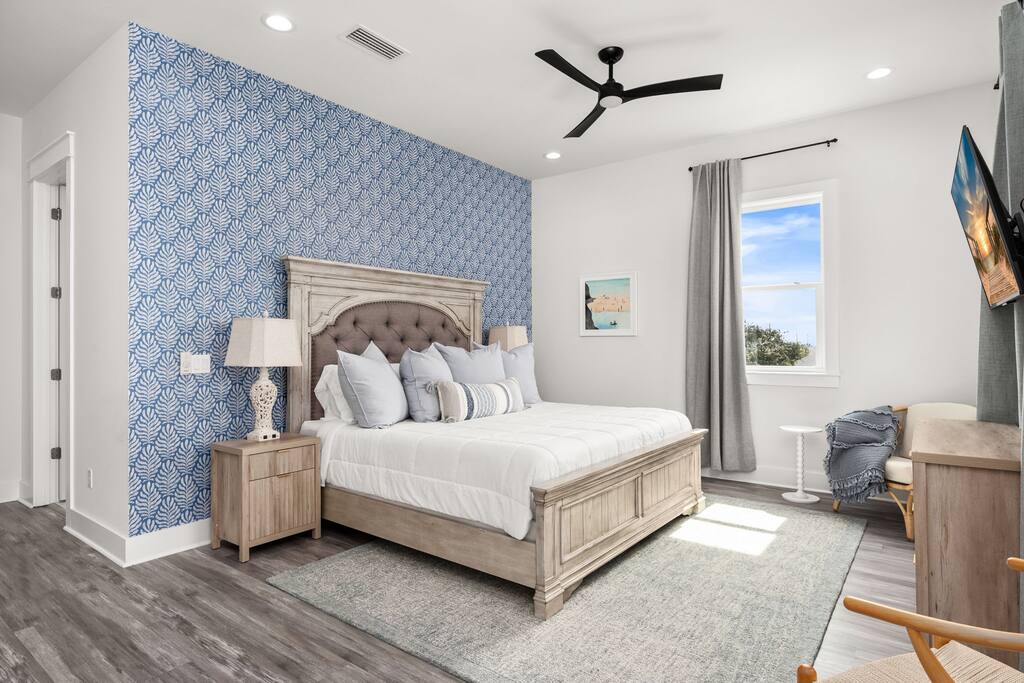 The home is located in Panama City Beach on a walkable residential street near public beach access. Many guests enjoy walking or biking to the beach and nearby spots, while a car is recommended for visiting Pier Park, grocery stores, and exploring more of the area. Ride-share services are also readily available.